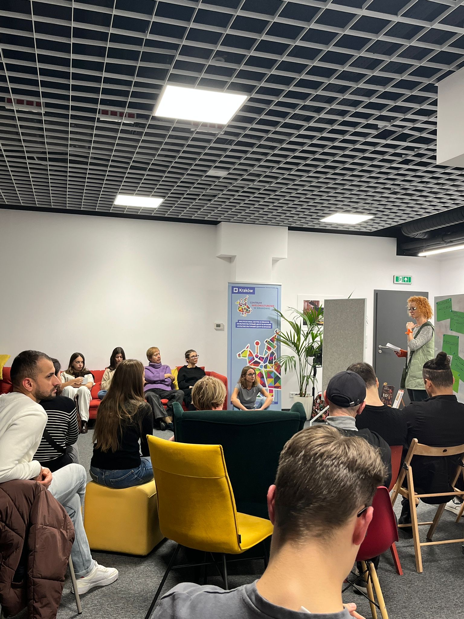 ✨ Na Open Community Evening uczyliśmy się malowania na wodzie techniką Ebru, tworząc prawdziwe małe dzieła sztuki. W tym samym czasie odbywał się English Speaking Club w halloweenowym wydaniu oraz seminarium dr Natashy Bluth o doświadczeniach ukraińskich migrantek OWiM – Obserwatorium Wielokulturowości i Migracji.