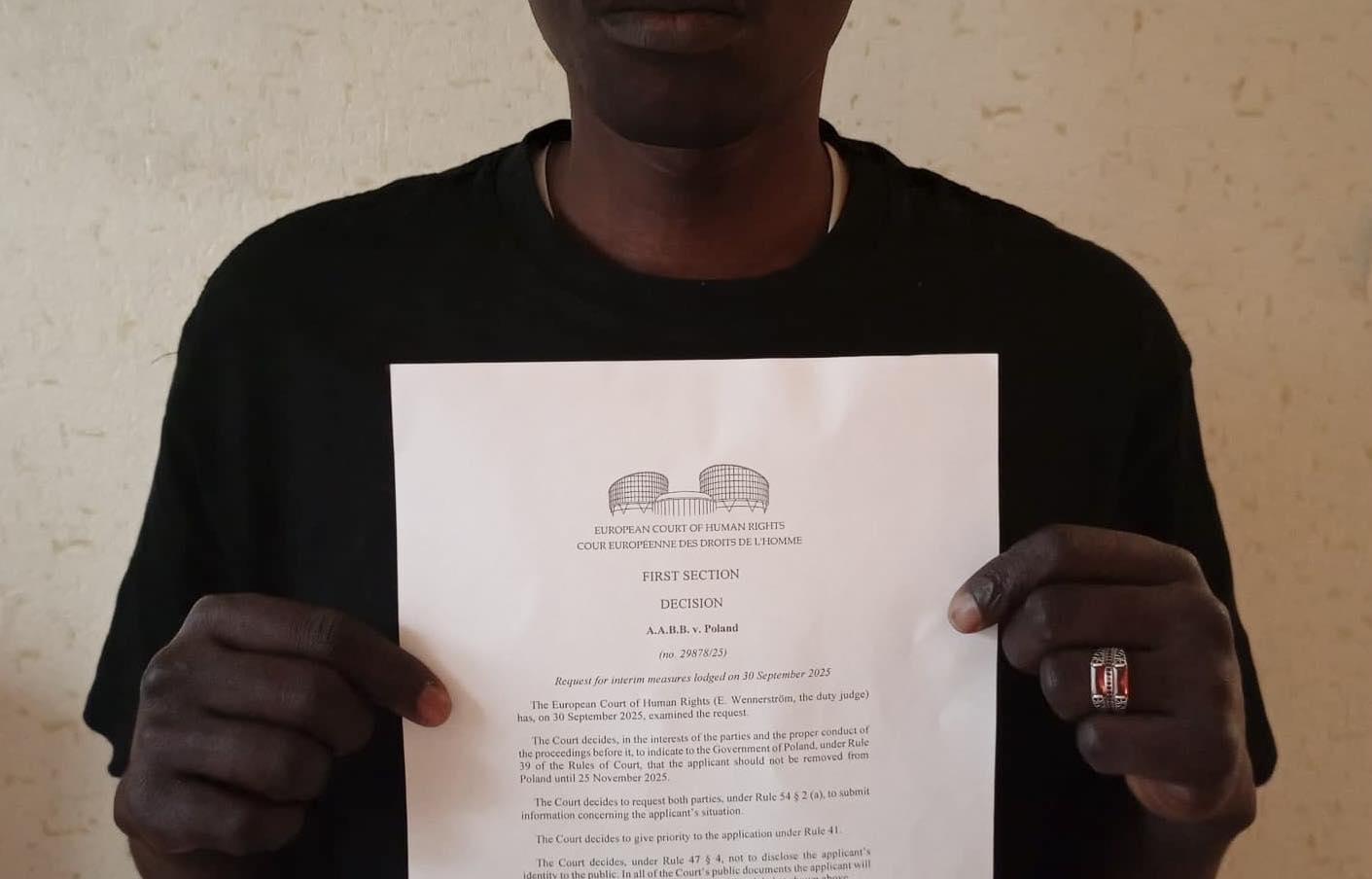 Chłopak z Sudanu, wyrzucony 30.09 przez Straż Graniczną z oddziału ratunkowego szpitala w Hajnówce do białoruskiego lasu, wróci jutro na przejście graniczne w Terespolu z decyzją Europejskiego Trybunału Praw Człowieka zakazującą jego wydalenia z Polski.