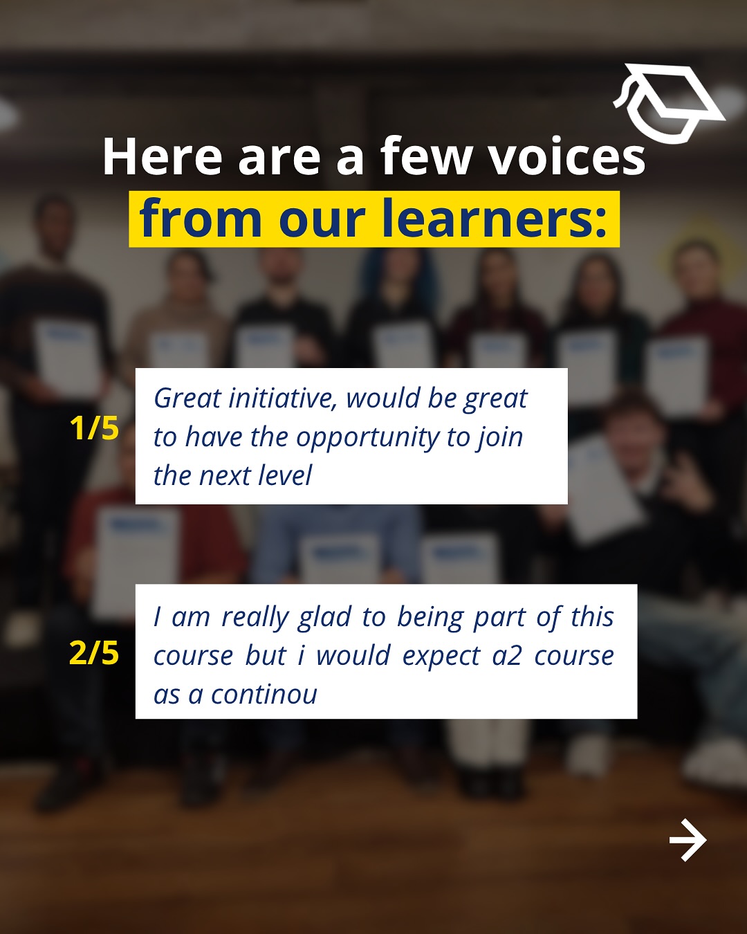 👉 У майбутньому плануються нові групи для англомовних учасників (A1 і вище) — слідкуйте за оновленнями на нашій сторінці!
