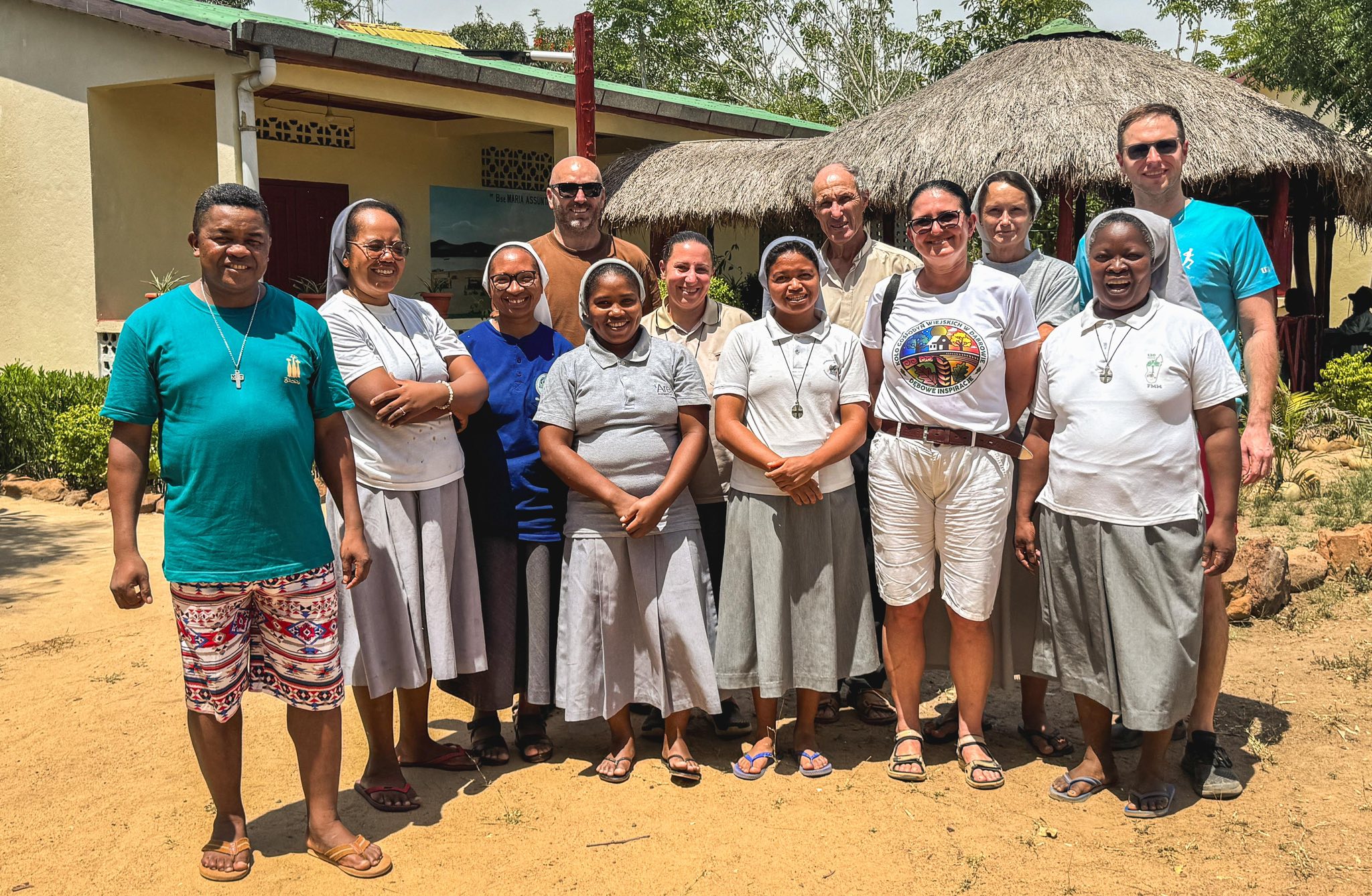 📸 Zdjęcie 3 – Cały lokalny zespół: siostry, księża i wolontariusze.