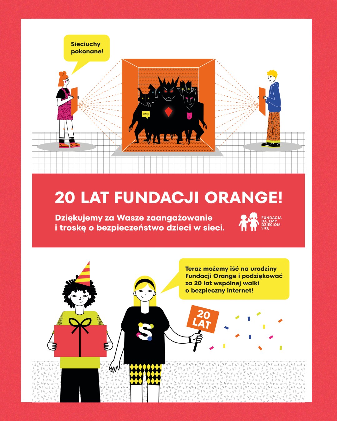 Fundacja Orange świętuje 20 lat swojej działalności, a dla nas, w Fundacji Dajemy Dzieciom Siłę, to jednocześnie jubileusz dwóch dekad współpracy. To partnerstwo, które konsekwentnie wzmacnia działania na rzecz bezpieczeństwa dzieci w internecie. Bez tego wsparcia nie powstałoby wiele kampanii, programów edukacyjnych, konferencji i inicjatyw, które realnie wpływają na codzienność dzieci i młodych ludzi.