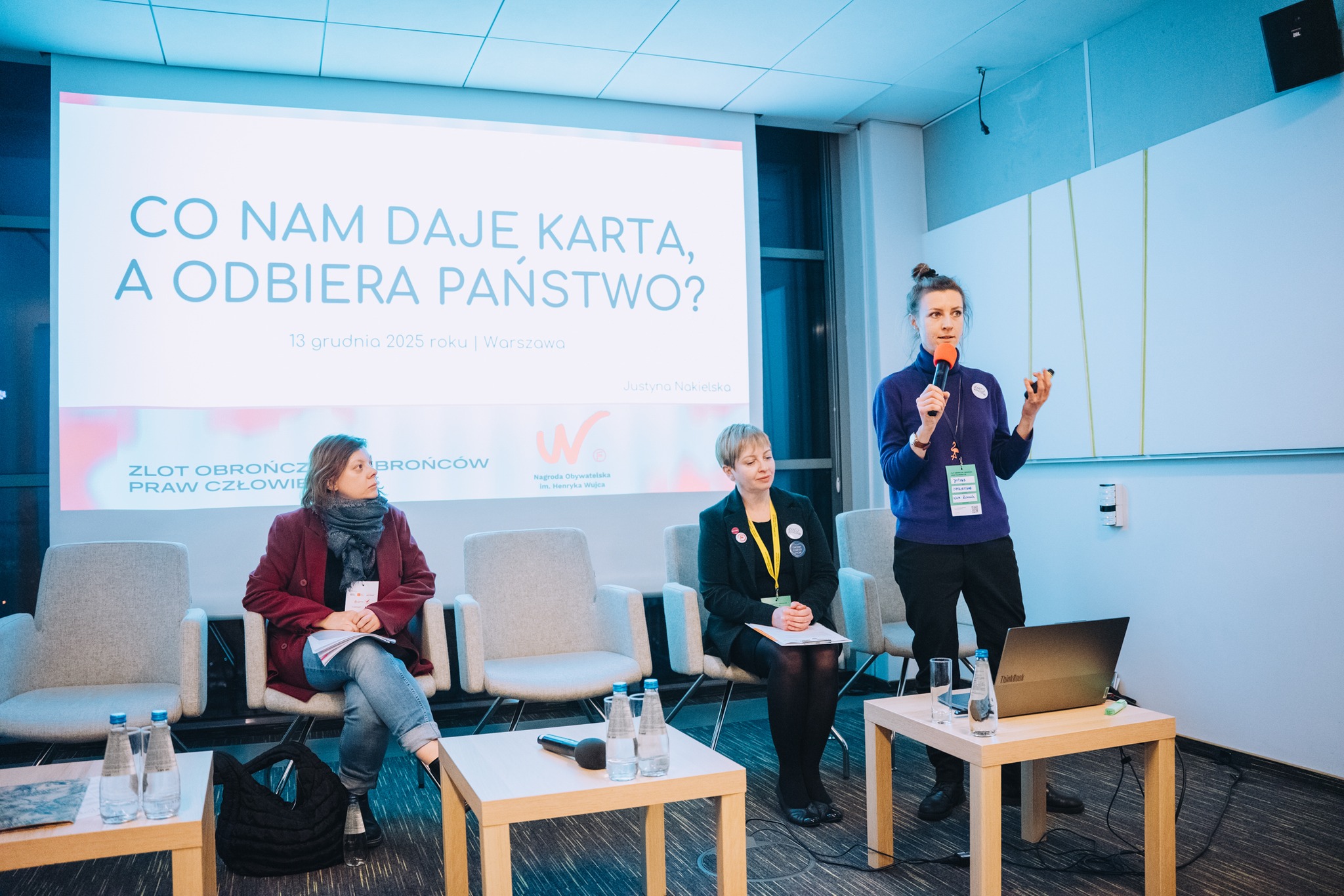 3. „Co nam daje Karta, a odbiera państwo” (prowadzenie: Anna Duniewicz; prelegentki: ekspertki Anna Grudzińska, OFOP i Justyna Nakielska, Inicjatywa „Nasz Rzecznik” oraz osoby aktywistyczne: Marta Majka Wiśniewska, Fundacja Greenmind; Anna Gryta, Miasto Obywatelskie Lubartów; Anna Mirkowska, Stowarzyszenie Mudita i Rubikus help UA; Sarian Jarosz, Konsorcjum Migracyjne).