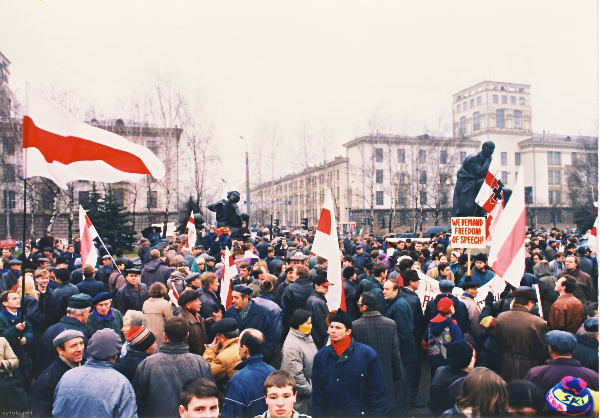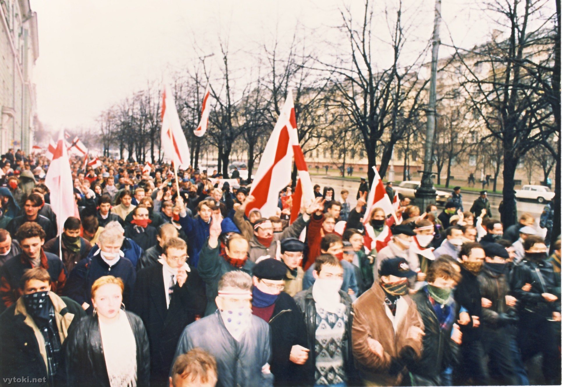 Kartka z kalendarza: 17 listopada 1996 roku ulicami Mińska przeszedł “Marsz z zamkniętymi ustami”, którego uczestnicy wyrazili sprzeciw wobec planowanego referendum.