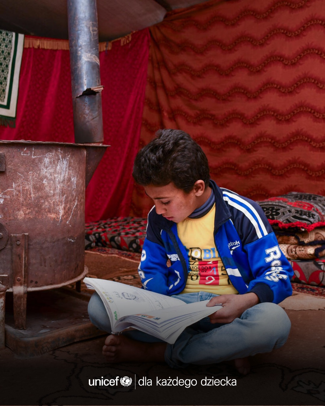 Rodzina chłopca została zmuszona do ucieczki, gdy bombardowania w ich mieście stały się zbyt intensywne. Dziś mieszkają w prowizorycznym namiocie.