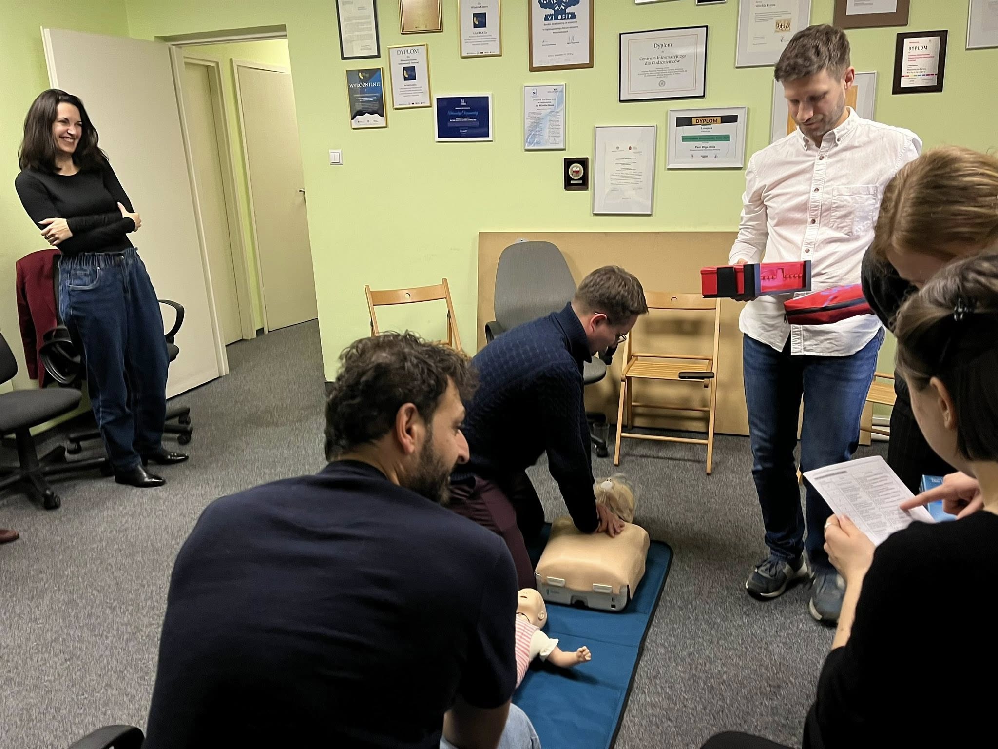 🚑 Dzięki uprzejmości IFMSA-Poland Oddział Warszawa, nasz zespół został solidnie przeszkolony z udzielania pierwszej pomocy. Daleko nam do ich umiejętności, ale wiemy, co robić i jak nie stracić głowy w nagłej sytuacji. ❤️🩹
