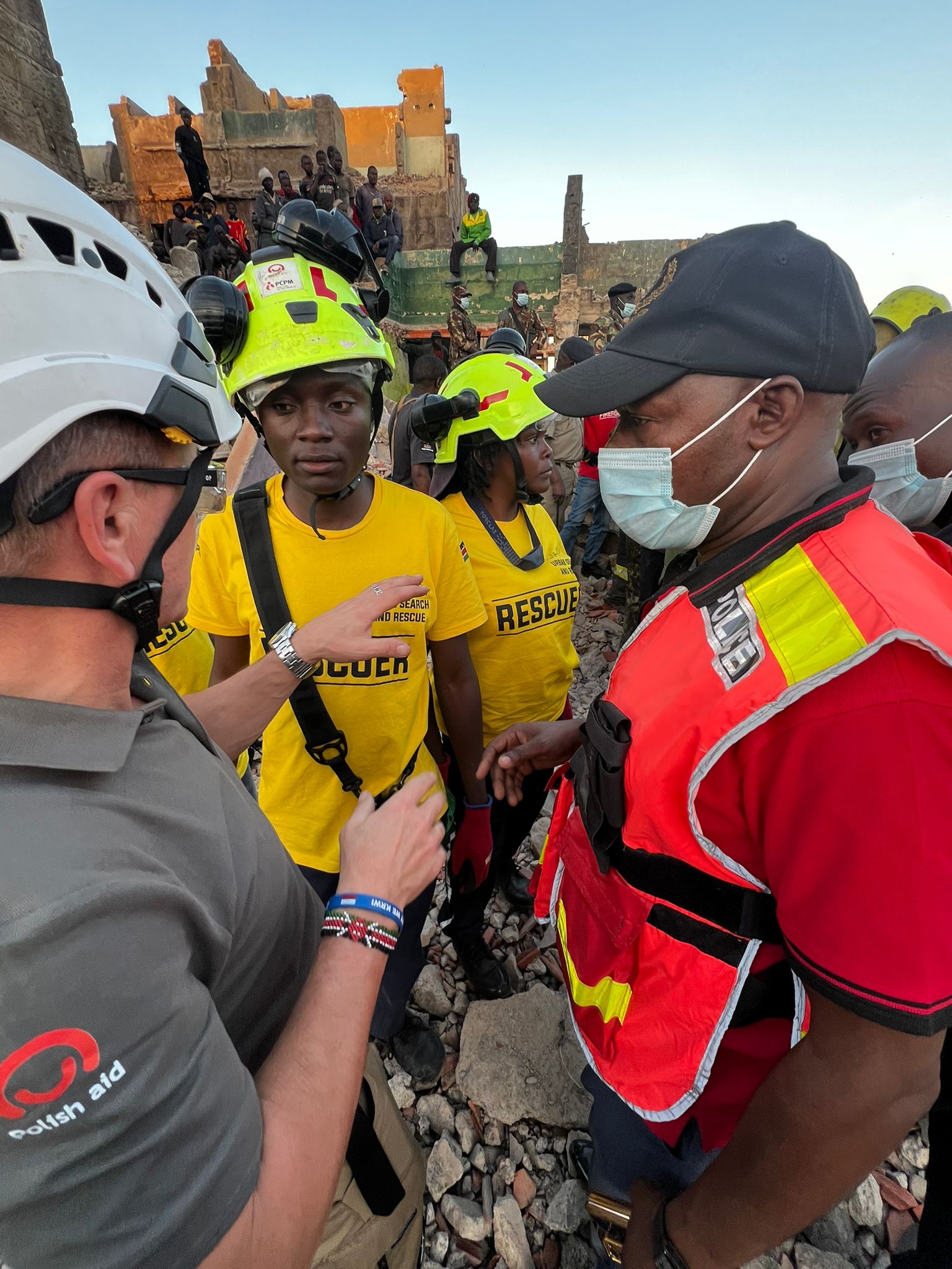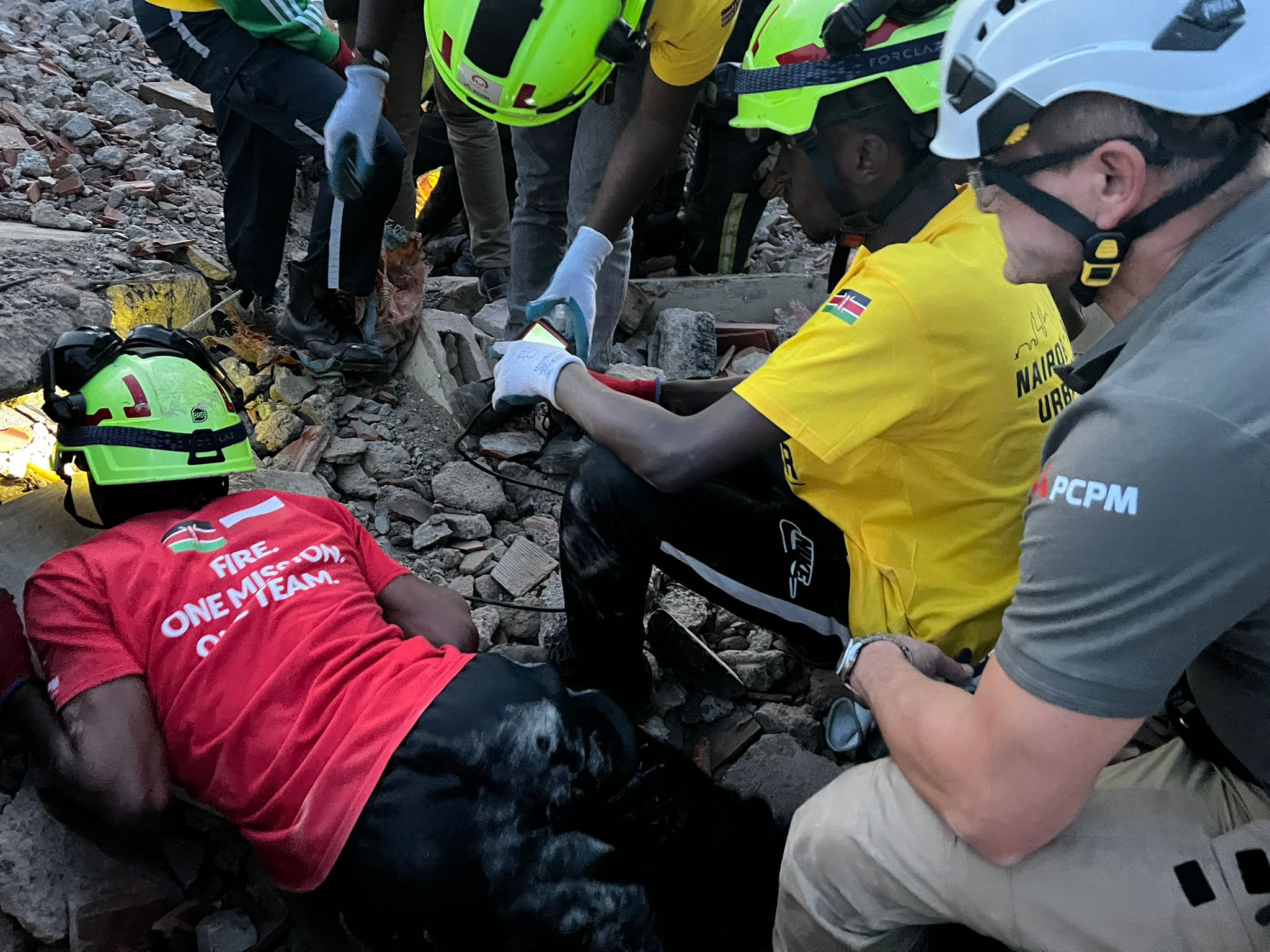 Pierwsze informacje są bardzo złe – w budynku mogło przebywać nawet 20 osób. Kenijskie służby błyskawicznie powołały sztab kryzysowy i skierowały dodatkowy personel, aby jak najszybciej dotrzeć do uwięzionych pod gruzami. Razem ze strażakami na miejscu pojawił się także polski instruktor, który jeszcze chwilę wcześniej prowadził zajęcia szkoleniowe. Bez wahania dołączył do akcji, pracując ramię w ramię z kenijskimi ratownikami.
