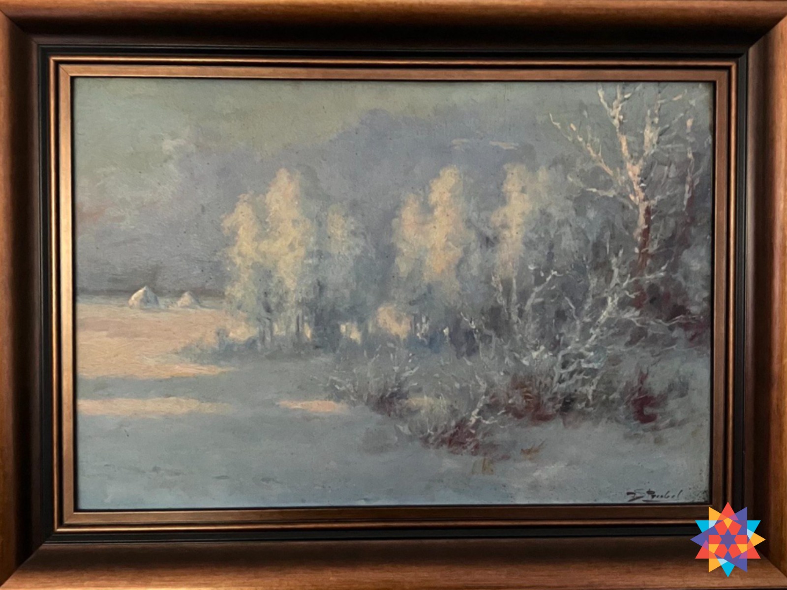 A beautiful oil painting depicting a winter landscape – full of peace, quiet, and that unique atmosphere that the snowy season brings.