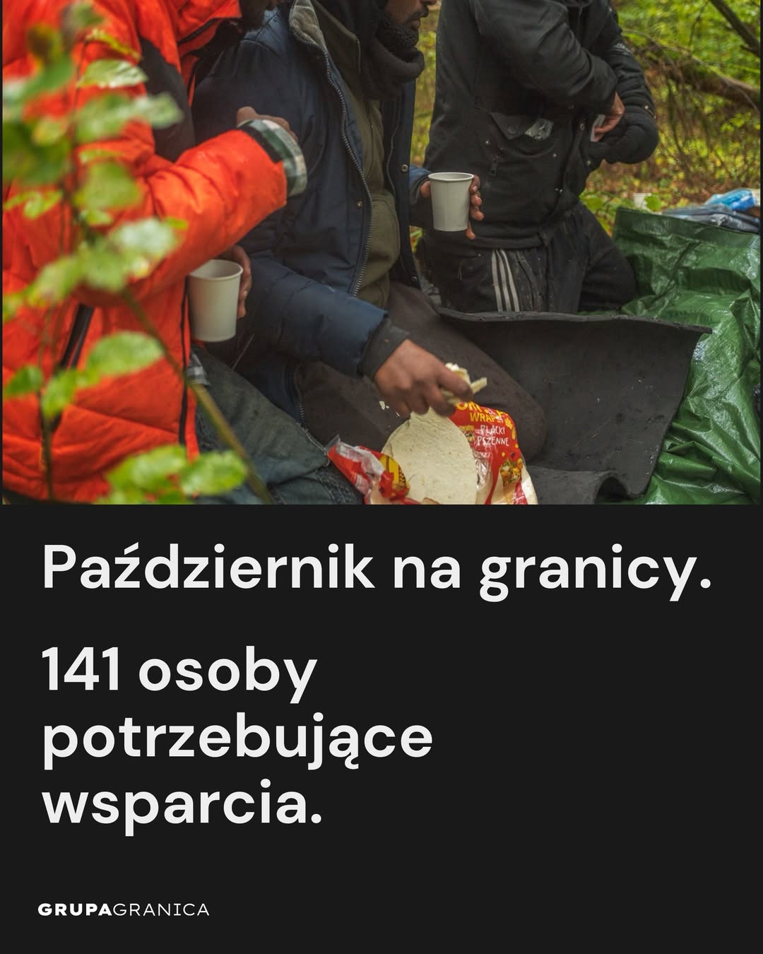 W październiku wychodziliśmy do lasu 20 razy. Z pomocą humanitarną udało się dotrzeć do 70 osób w ramach 16 interwencji. Wśród nich było czworo dzieci, z czego jedno bez opieki. Niestety, 4 interwencje były nieudane – najczęściej oznacza to, że zanim dotarliśmy z pomocą do ludzi w lesie, zostali oni już wywiezieni do Białorusi.