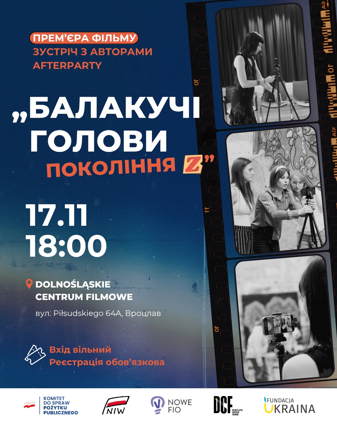 Після кількох місяців наполегливої роботи, зйомок, емоцій та творчого монтажу — 60 молодих митців запрошують тебе на прем’єрний показ документального фільму “Балакучі голови покоління Z”, створеного в межах проєкту Фундації Україна.