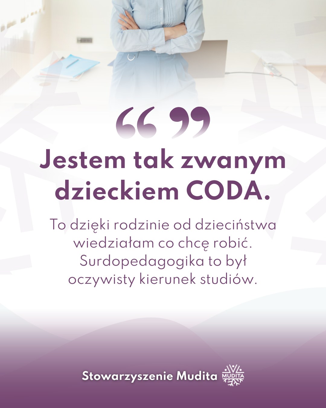 “Cała moja rodzina jest Głucha. Z mojego pokolenia tylko mój najmłodszy brat, siostra cioteczna i ja słyszymy. Jestem tak zwanym dzieckiem CODA. Ktoś może pomyśleć, że to trudna sytuacja wychowywać się w takim środowisku, ale ja nie mam z tym żadnego problemu. To dzięki rodzinie od dzieciństwa wiedziałam co chcę robić.