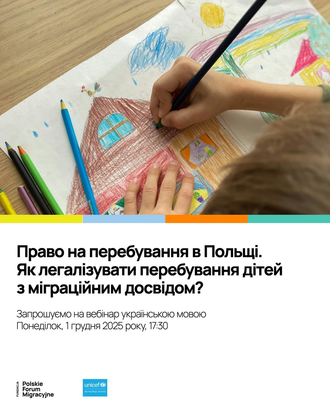 Реєстрація: https://polskieforummigracyjne627.clickmeeting.com/legalizacja-pobytu-dzieci-cudzoziemskich-w-polsce/register