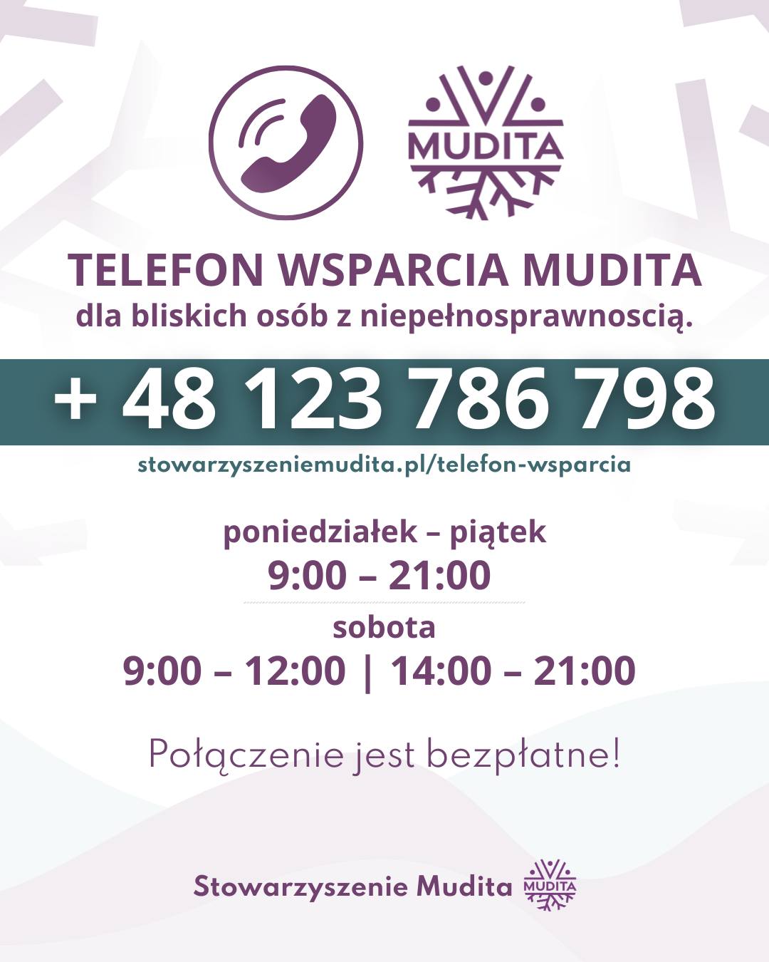 Telefon Wsparcia Mudita udziela bezpłatnej pomocy psychologicznej bliskim osób z niepełnosprawnościami.