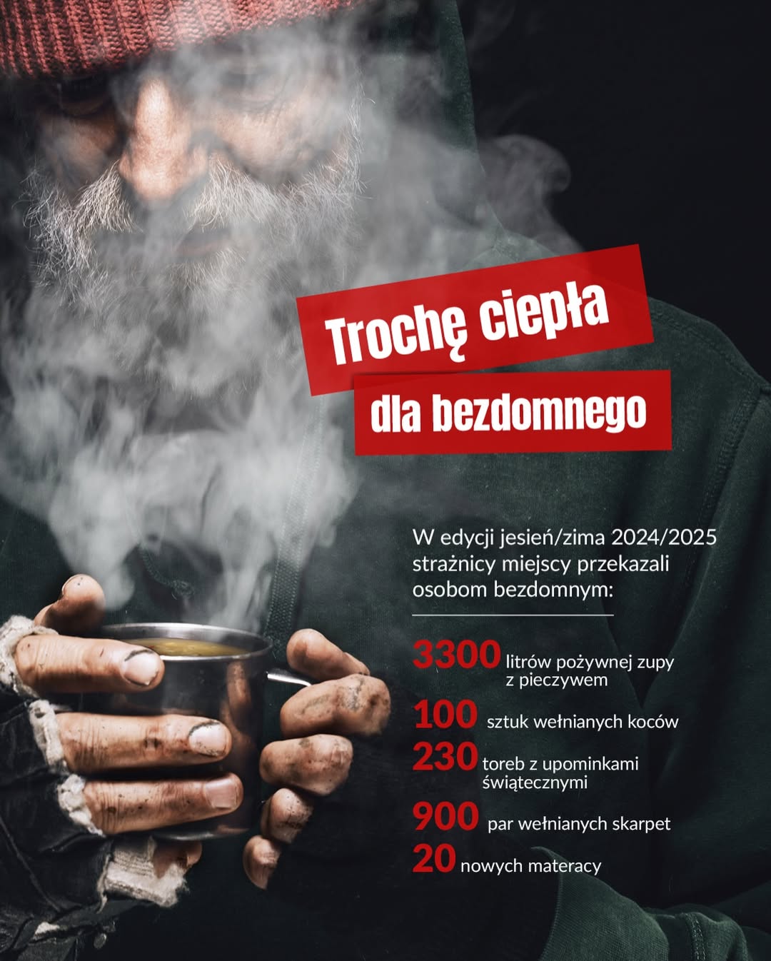 🥣 W ramach 11. edycji akcji „Trochę ciepła dla bezdomnego” razem ze Strażą Miejską kolejny raz będziemy docierać z ciepłymi posiłkami i niezbędnym wsparciem w postaci koców, ubrań czy środków higienicznych do osób w kryzysie bezdomności, przebywających poza schroniskami i noclegowniami.