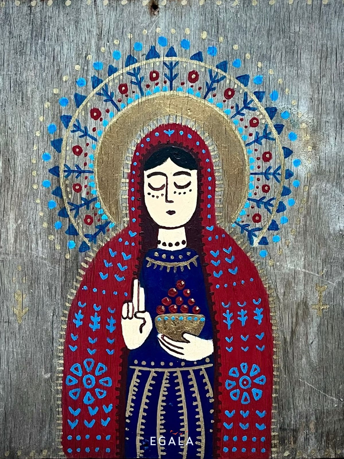 Świątki powstały na drewnie (20 cm x 30 cm), malowane są farbami akrylowymi. Można je postawić lub powiesić na ścianie.