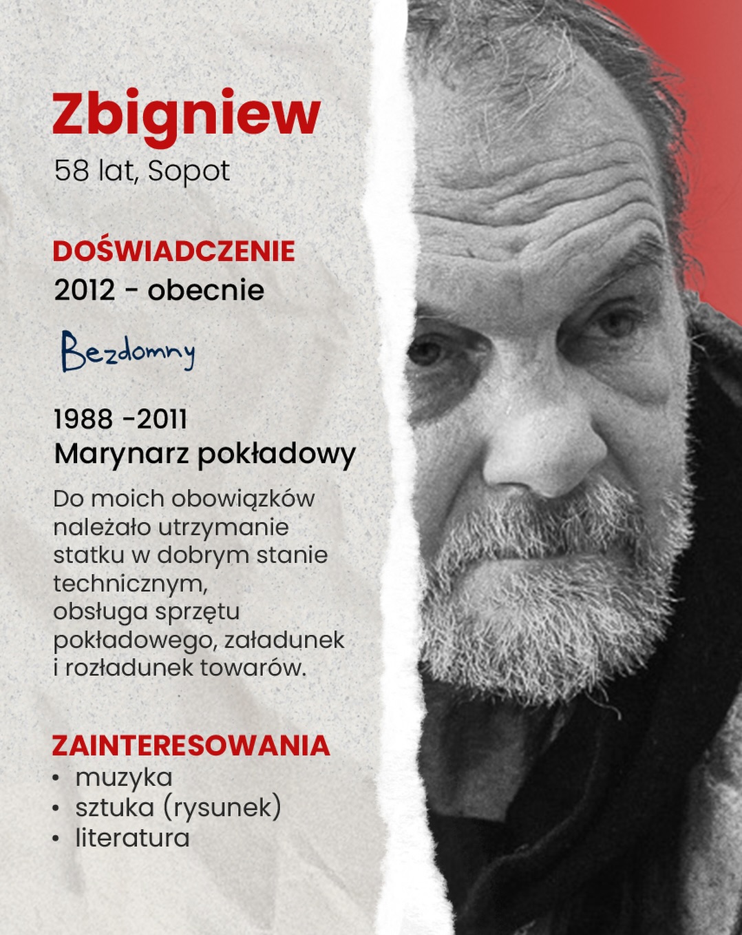 📝 Zbyszek całe życie pływał po świecie, nigdy nie założył rodziny – dziś zdrowie nie pozwala mu już wsiąść na statek, a on nie ma dokąd wracać.